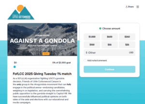 This Giving Tuesday and through the end of the year, we ask that you support us going into the 2026 election cycle and ski season by donating any amount to support our communications needs. Note: donations are not tax-deductible.