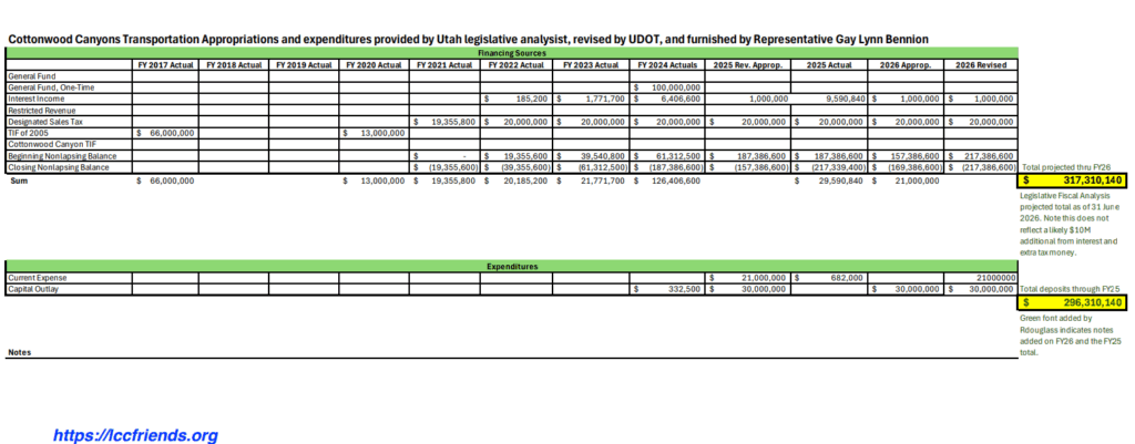 Cottonwood Transportation Infrastructure Fund Allocations and Expenditures by UDOT