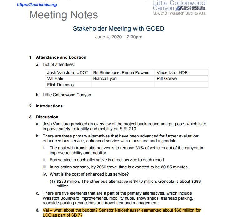 Minutes from 2020 UDOT and Governor's Office of Economic Development Meeting